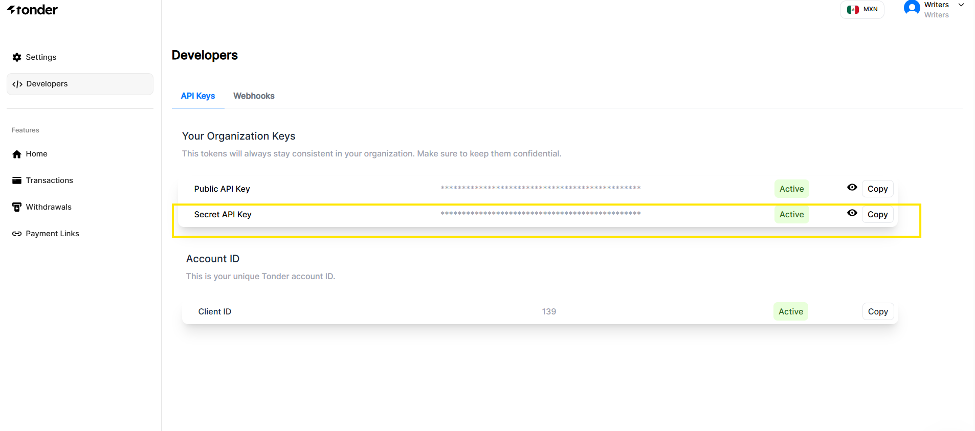 Before you begin, make sure you have the following:- Your Tonder API Keys, which you can find in the Developers section of the Tonder Dashboard. This step is common to all Tonder SDKs and is required for authenticating your application with Tonder’s services.